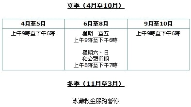 塘福泳灘的救生員當值時間: